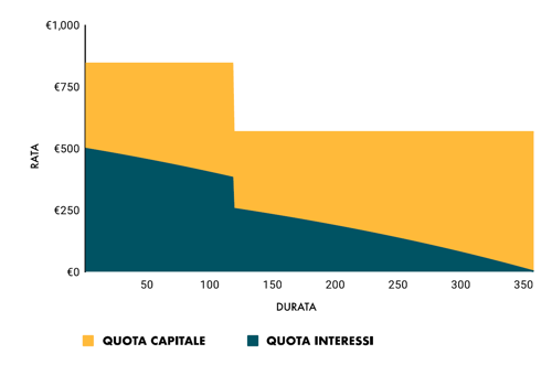 Col passare degli anni, rata dopo rata, il capitale da rimborsare diminuisce, quindi gli interessi vengono calcolati su una base più piccola e pesano sempre meno nella rata. Alla fine del mutuo, le ultime rate avranno una quota di interessi molto bassa e la maggior parte della rata servirà a rimborsare il capitale residuo.