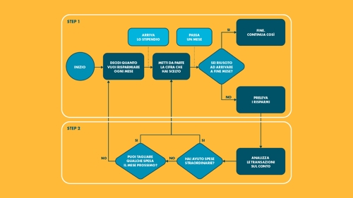 In questo articolo invece, ti proponiamo un metodo di risparmio error-friendly, dove la possibilità di errore non solo è contemplata, ma è anche accolta. È un metodo in due step – più uno “Step 0” introduttivo – da ripetere ogni mese. Il suo obiettivo è stabilire quale percentuale del proprio reddito destinare al risparmio attraverso una serie di tentativi, errori ed affinamenti.